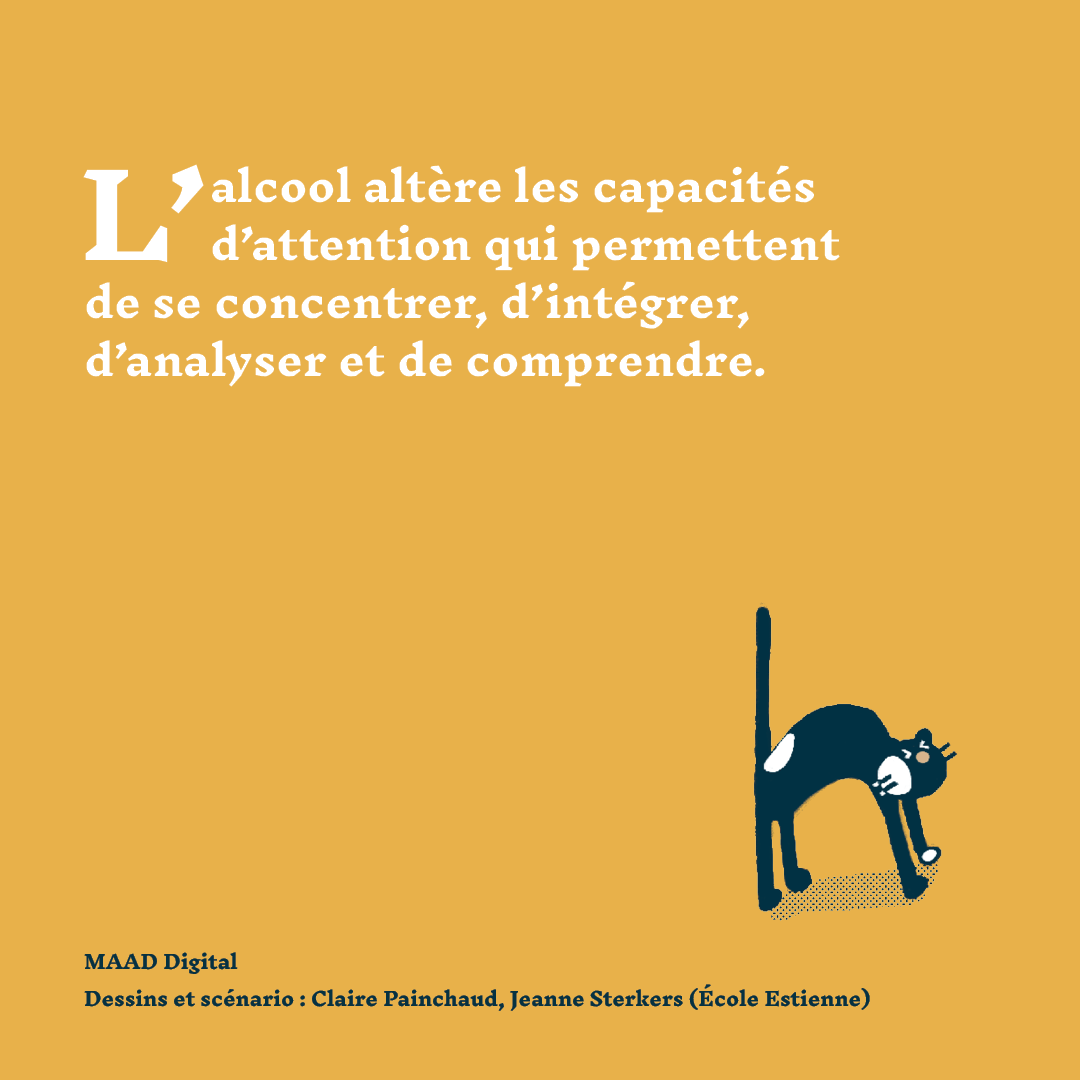 Bande dessinée pour Instagram démontrant des effets de l’alcool sur la mémoire pour @maaddigital. MAAD Digital est une plateforme qui s’est donné pour objectif de rendre accessible une information de qualité les questions de société qui touchent à la santé.